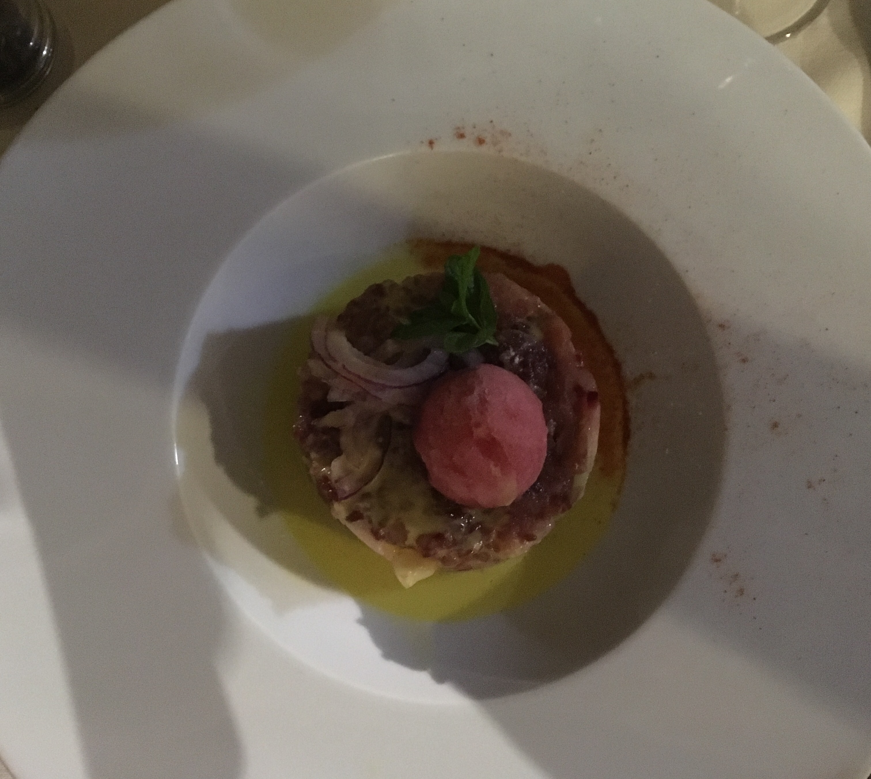 Raw tuna compot w watermelon sherbet