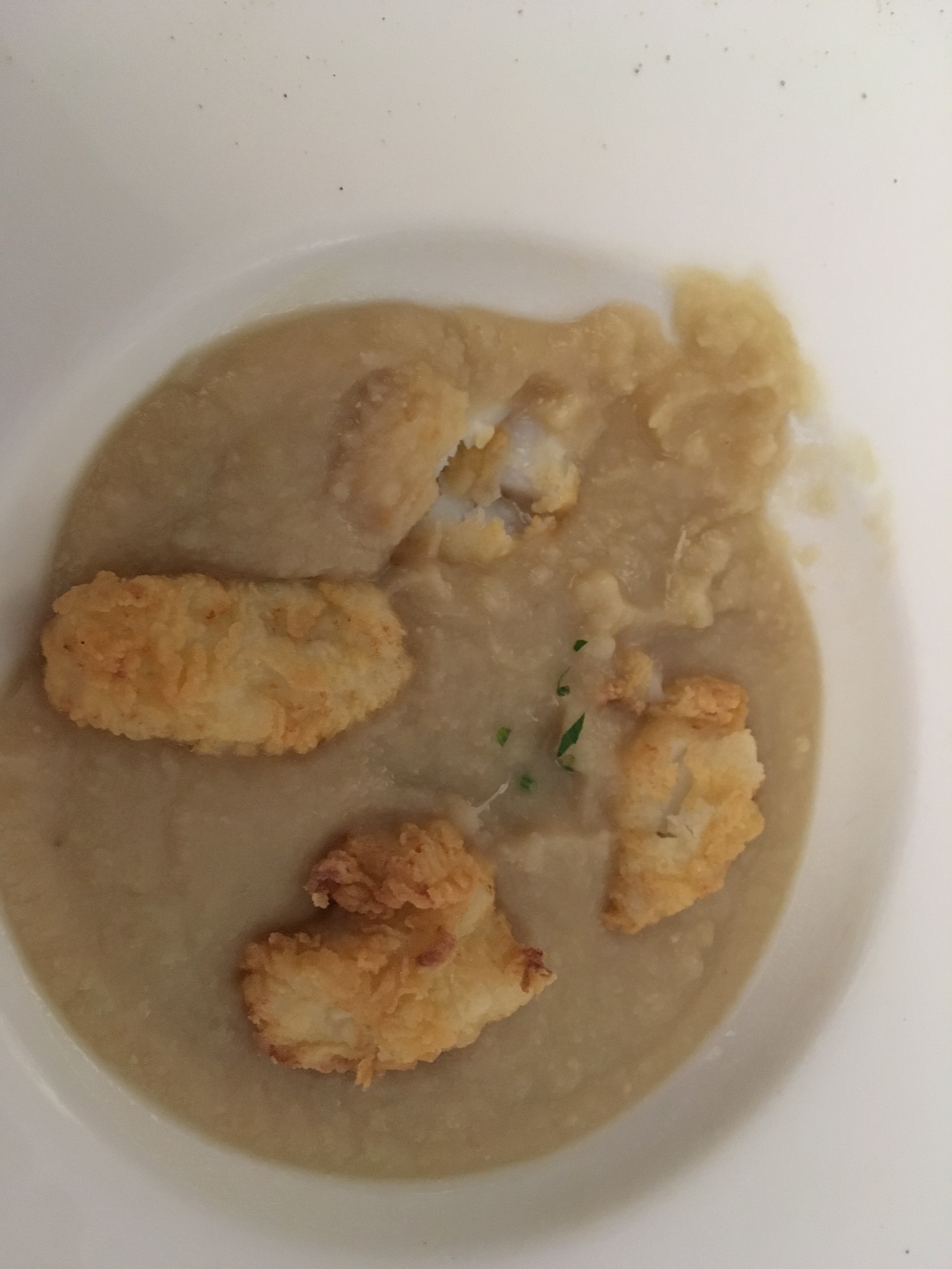 Salted cod on fave bean cream